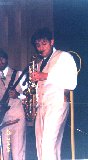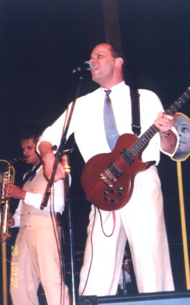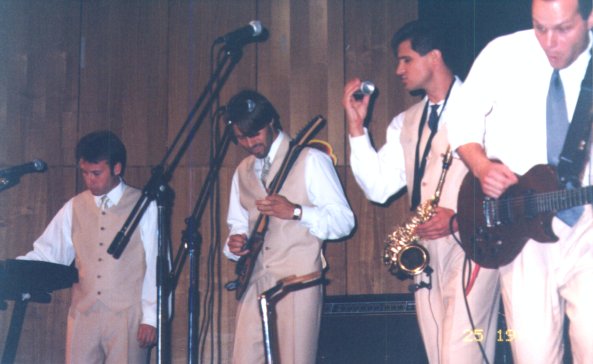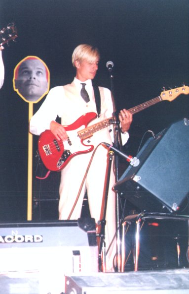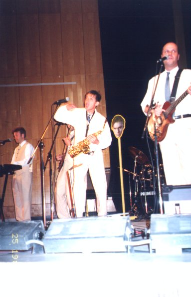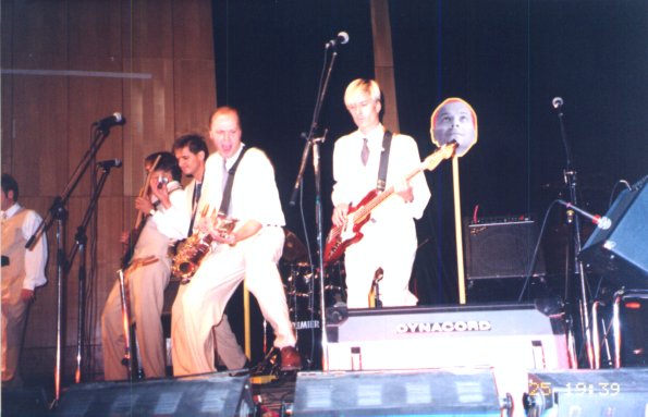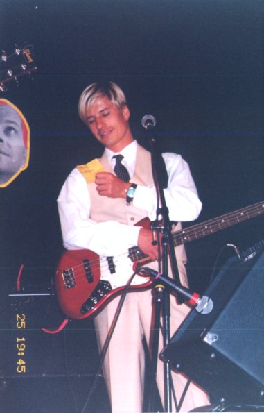 Жизнь в Гостевой тогда была бурная - многие терялись в догадках, кто же такое Адамс...:-)) Да и других "несчастников" можно было встретить на ее страницах гораздо чаще, чем теперь (не в обиду им будет сказано). Поэтому мы прислали на сцену записочку с вопросом про Адамса. Теперь-то я понимаю, что этим вопросом мы поставили большинство музыкантов в тупик, а тогда с удивлением наблюдали за тем, как наша записка переходит из рук в руки, и нигде не останавливается. В конце концов она попала к Андрею Гувакову (на фото желтая бумажка в его руке - это она), но он, конечно, не выдал тайну Адамса, а может, и сам не знал...:-))