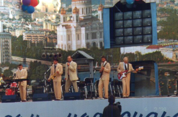 В ожидании выступления НС мы успели пообщаться друг с другом, а также перехватить Гуву и Петровича, которые шли за коньяком...:-) Ал.Ан. за сценой подкреплялся исключительно здоровой пищей, а именно салатом из морковки. (Tony! Все еще жду фотографию!:-) Пару раз мимо нас пролетало исключительное занятое Адамс... Tony слегка хулиганил и кидал ему на пейджер мессаги...:-))